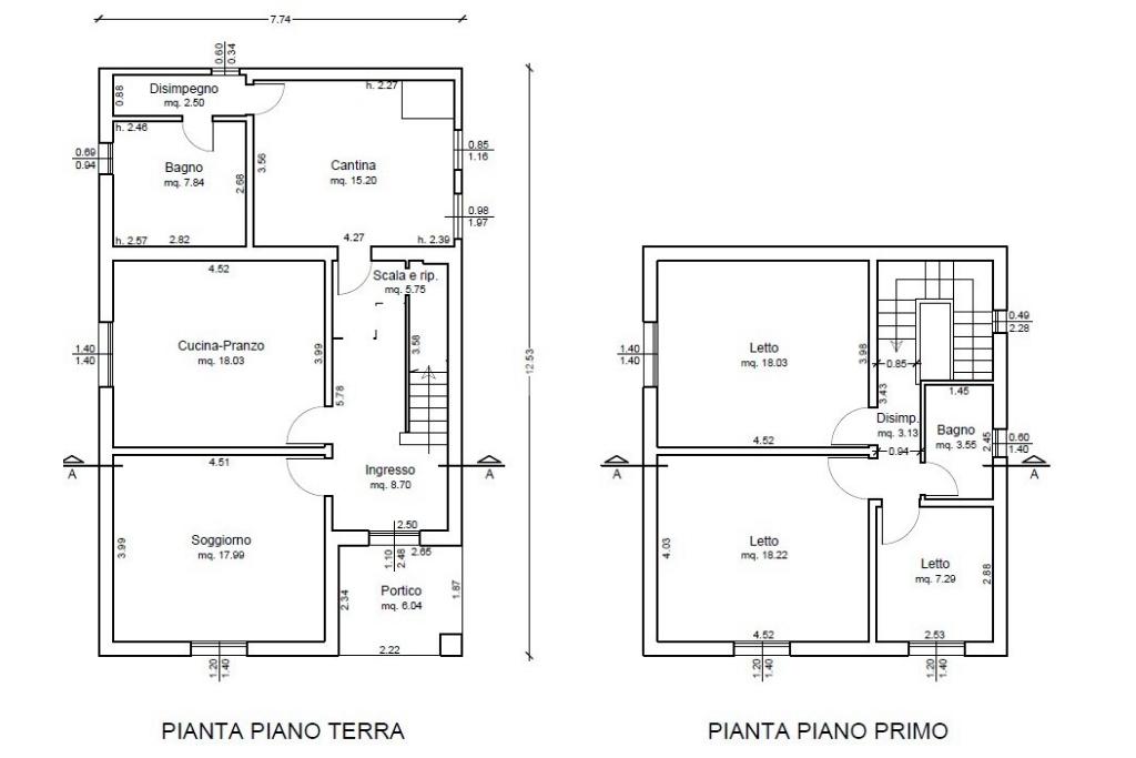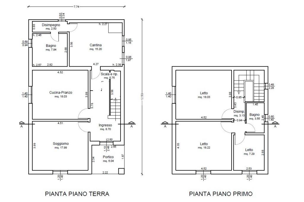 Scala interna che conduce al piano primo, composto da 2 camere da letto matrimoniali, uno studio (terza camera) ed un bagno finestrato.
